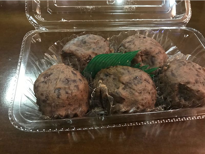 お風呂上りにおはぎ(5個入300円)を頂きながら休憩。