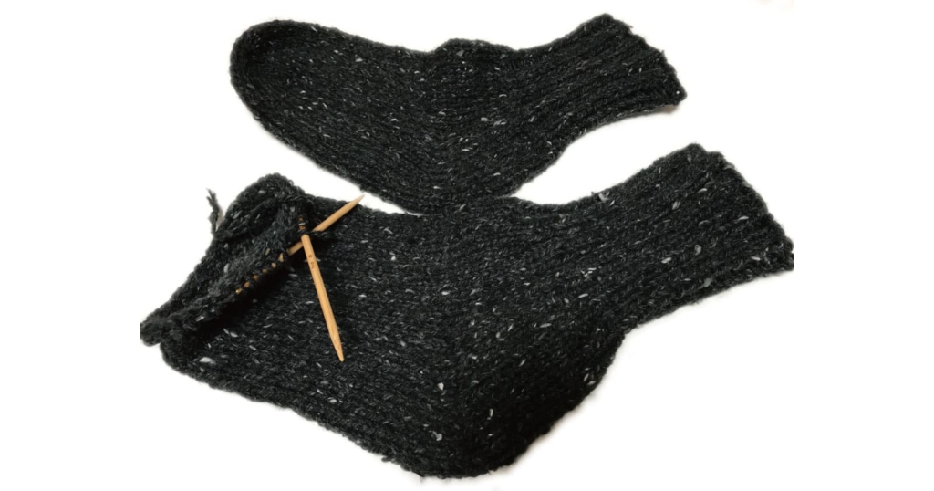 今回、靴下2号はグレーの毛糸を使ったのでとても編みやすかったです。